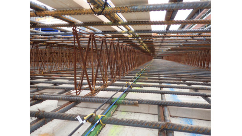 Figure 3: Fibre optic sensor cables attached to the basement raft reinforcement